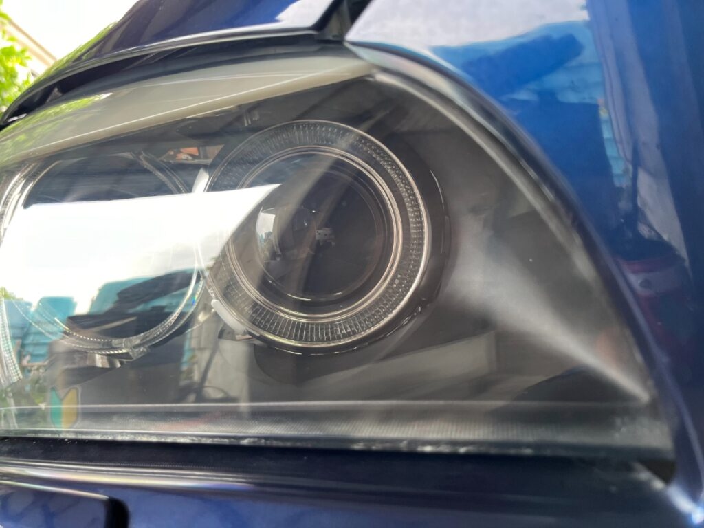 まれに内側が曇るケースがありますが、これはヘッドライト内部に水分が侵入したことが主な原因です。内側を綺麗にするにはカバーを外す「殻割り」が必要ですが、破損リスクが高いため、弊社では内側の施工はお受けしておりません。